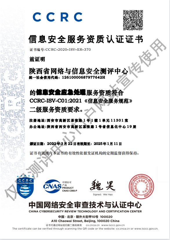 信息安全风险评估服务资质证书 信息安全应急处理服务资质证书